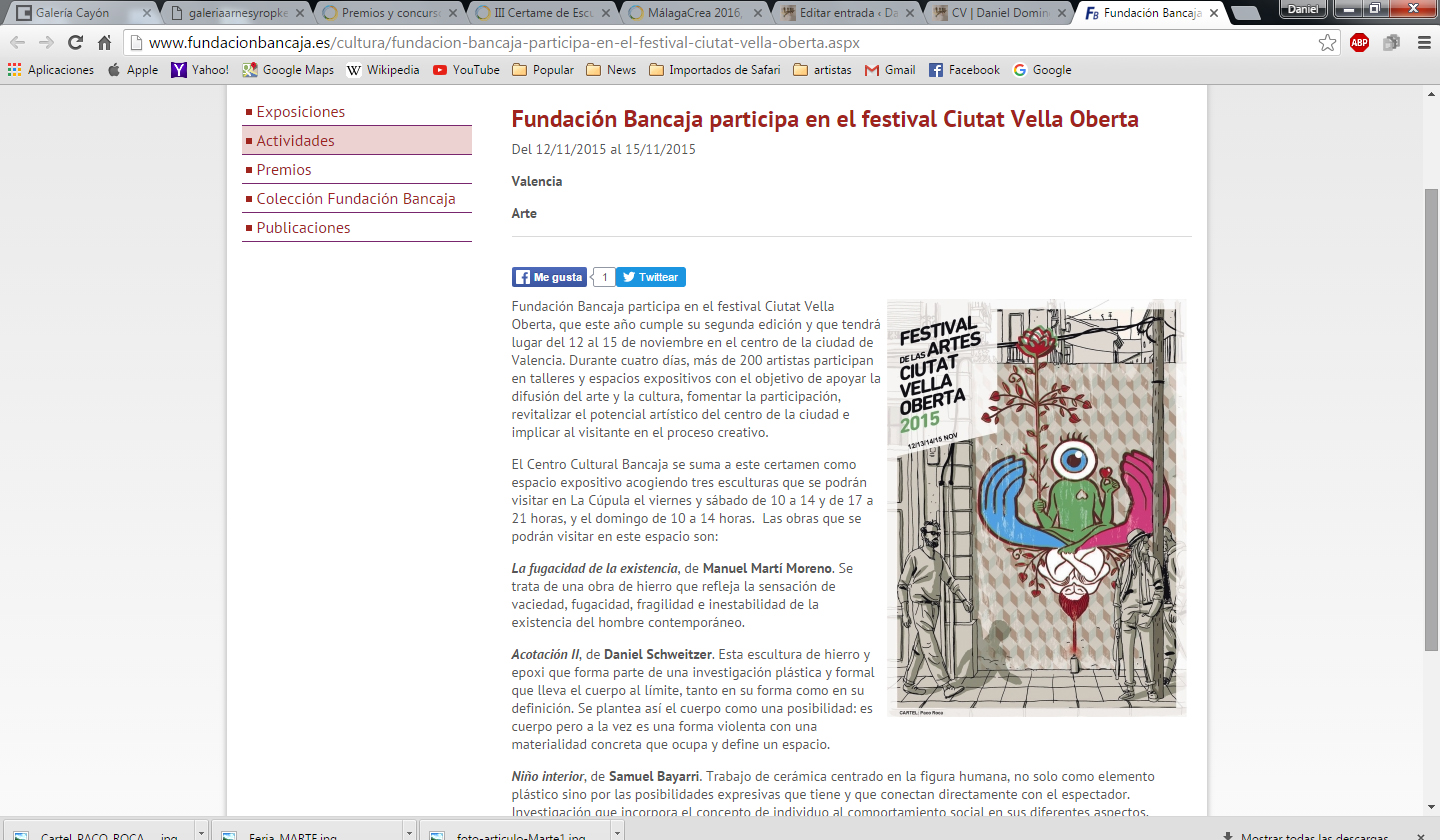 Hoy inaugura el festival de Ciutat Vella Oberta donde tengo el placer de participar en una exposición de escultura en el Museo de Bellas Artes de Valencia en muy buena compañía: