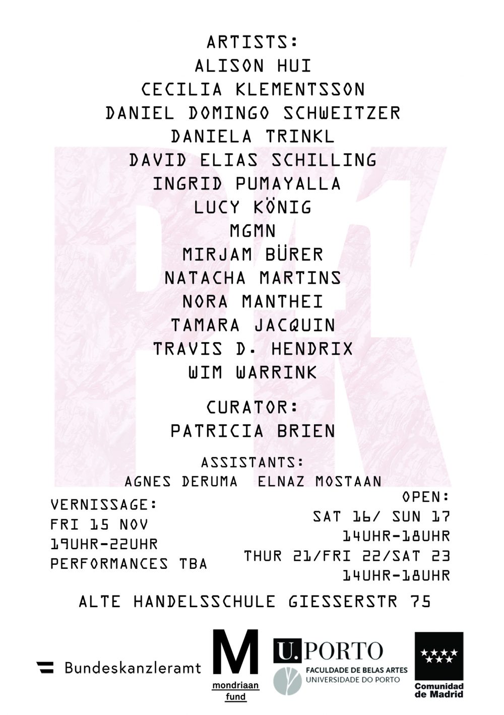 Este viernes 15 de noviembre inaugura la exposición colectiva “Reset Unsettling Flesh Layers” en la Alte Handelsschule de Leipzig comisariada por Patricia Brien. La exposición muestra los primeros resultados de la residencia de artista internacional PILOTENKUECHE en la que participo junto a otros 13 artistas.