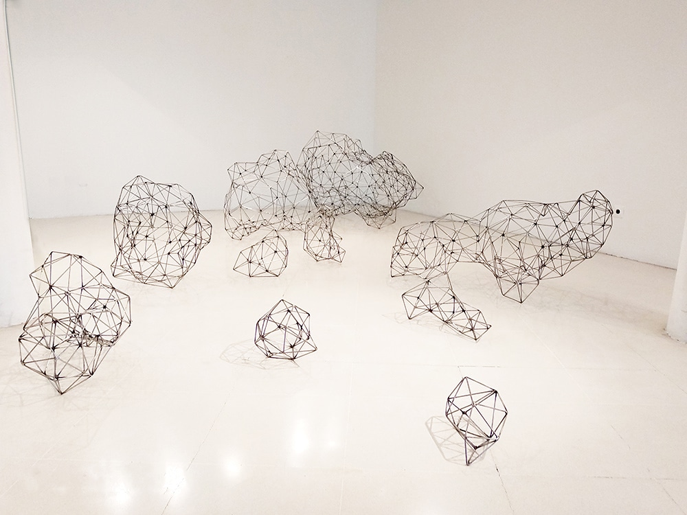 Repetición, trama y estructura, son los conceptos claves que entrelazan las diferentes obras expuestas. Puntos en común que relacionan dos cuerpos de trabajo diferentes pero que, al mismo tiempo, son capaces de encontrarse en un lenguaje plástico lleno de procesos semejantes que implican la fragmentación y la unión de la materia.