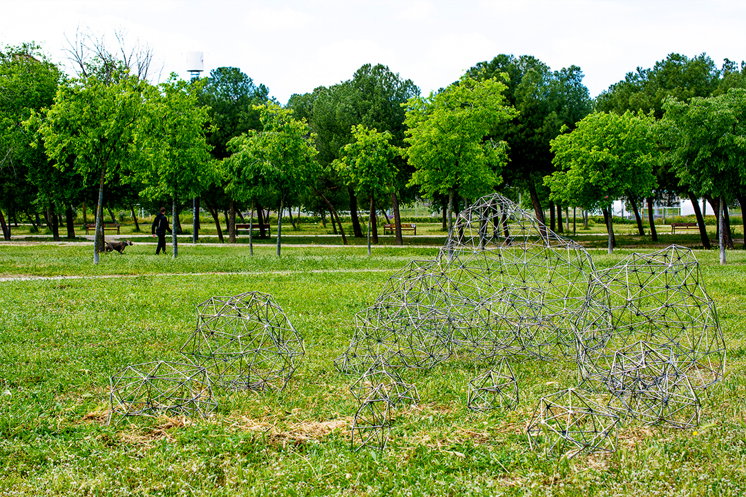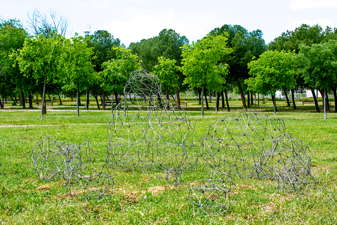 Entrelíneas es un proyecto donde cuerpo y espacio dialogan a través de un trabajo de geometría fractal. La instalación está compuesta por diez objetos modulares cuyas medidas oscilan entre 30 cm y 170 cm por lado. Invita a transitar al espectador en un espacio de inmersión donde la acción del cuerpo es lo que permite relacionarse con los objetos para crear espacios nuevos, que surgen de la experiencia sensorial. El espacio vacío es un elemento plástico más, que se puede moldear a partir de la acción creativa del espectador. Entrelíneas es un dispositivo que no sólo es para contemplar sino para interactuar, donde el espacio, a través de la acción, deviene cuerpo.