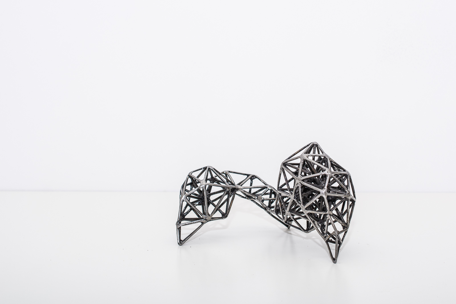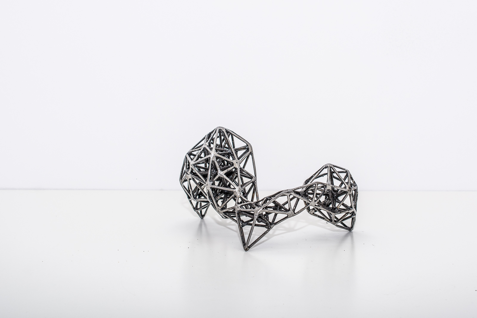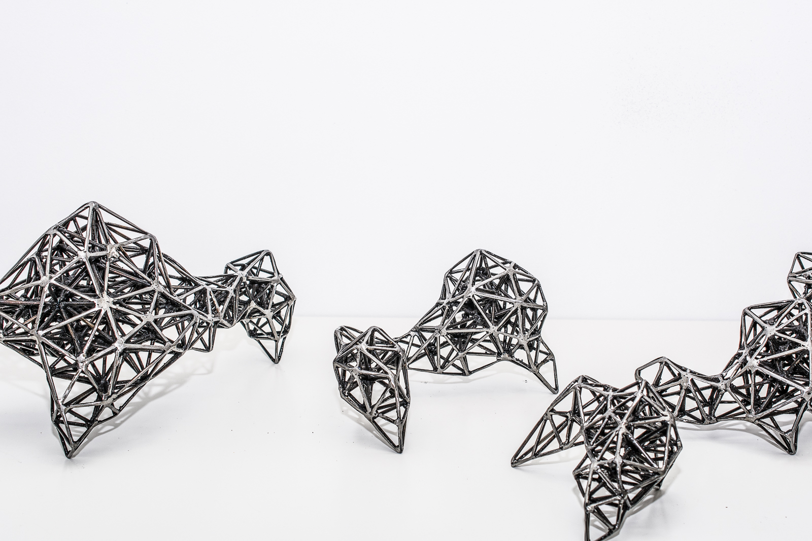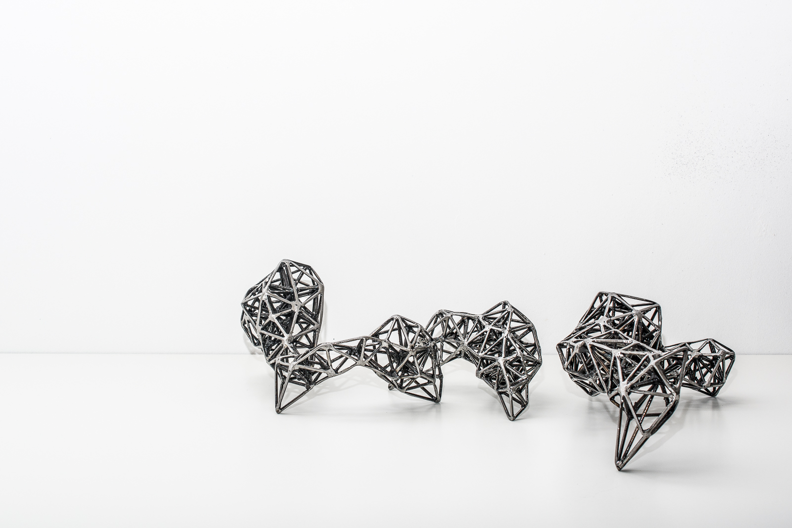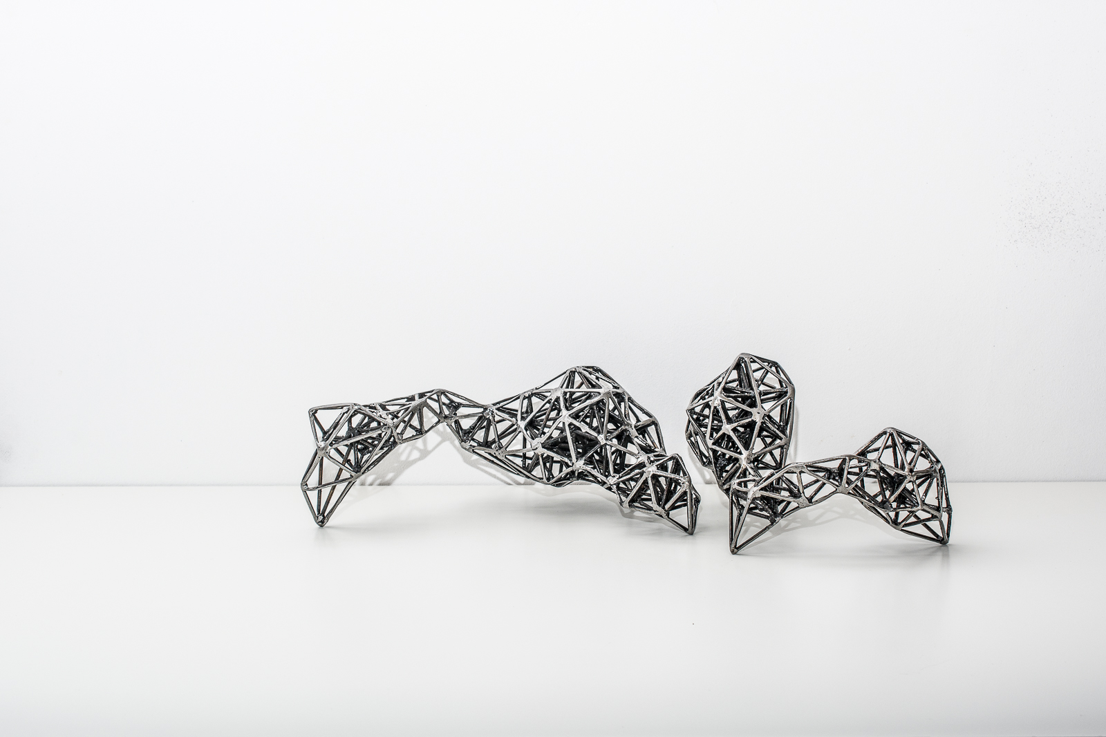 El proyecto Nodos propone una instalación interactiva compuesta de una serie de 7 objetos de hierro de medidas variables (pequeño formato) realizados a partir de la expansión de estructuras fractales. Los objetos invitan a la manipulación, permitiendo modificar la relación entre los mismos y sus posibilidades. El espacio se convierte en un elemento plástico más que el espectador hace suyo.
