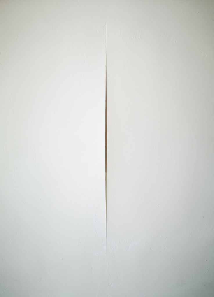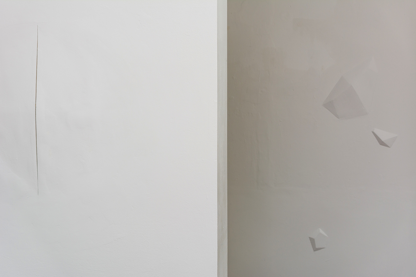 2. Wall cut, 2019, pintura de pared, cartón y yeso, 100 cm.